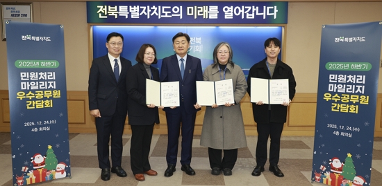 ÀüºÏƯº°ÀÚÄ¡µµ°¡ ¡®2025³â ÇϹݱ⠹οø ó¸® ¿ì¼öÁ÷¿ø ½Ã»ó ¹× °£´ãȸ¡¯¸¦ °³ÃÖÇÏ°í ½Å¼ÓÇÏ°í ¼º½ÇÇÑ ¹Î¿ø ¾÷¹« ¼öÇàÀ¸·Î ³ôÀº Æò°¡¸¦ ¹ÞÀº Á÷¿øµéÀ» °Ý·ÁÇß´Ù.