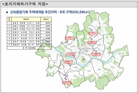 ¼¿ï½Ã°¡ ½Å¼ÓÅëÇÕ±âȹ(½ÅÅë±âȹ) ÁÖÅÃÀç°³¹ß Èĺ¸Áö 8°³ ±¸¿ªÀ» ÅäÁö°Å·¡Çã°¡±¸¿ªÀ¸·Î ÁöÁ¤ÇØ °³¹ß ±â´ë¸¦ ³ë¸° Åõ±â¼º °Å·¡ Â÷´Ü¿¡ ³ª¼¹´Ù.