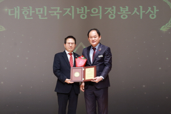 ±¤ÁÖ½ÃÀÇȸ Çã°æÇà ÀÇÀåÀÌ 24ÀÏ µ¿µÎõ½ÃÀÇȸ¿¡¼ ¿¸° Á¦9´ë ÈĹݱ⠴ëÇѹα¹Áö¹æÀÇÁ¤ºÀ»ç»ó ½Ã»ó½Ä¿¡¼ ´ëÇѹα¹Áö¹æÀÇÁ¤ºÀ»ç»óÀ» ¼ö»óÇß´Ù. ¡®´ëÇѹα¹Áö¹æÀÇÁ¤ºÀ»ç»ó¡¯Àº ´ëÇѹα¹½Ã±ºÀÚÄ¡±¸ÀÇȸÀÇÀåÇùÀÇȸ°¡ ÁÖ°üÇÏ¸ç ½Ã±º±¸ ±âÃÊÀÇȸº° °¢ 1¸í¿¡°Ô¸¸ ¼ö¿©ÇÑ´Ù.