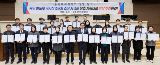 ¿ëÀÎÆ¯·Ê½ÃÀÇȸ°¡ 2ÀÏ º»È¸ÀÇÀå¿¡¼ ¡®±¹°¡ °æÀï·Â °È ¹× ÷´Ü Àü·«»ê¾÷ À°¼ºÀ» À§ÇÑ ¿ëÀÎ ¹ÝµµÃ¼ ±¹°¡»ê¾÷´ÜÁö Á¶¼º »ç¾÷ °üö ¼º¸í¼¡¯¸¦ ¹ßÇ¥ÇÏ°í »ç¾÷ÀÇ ´çÃÊ °èȹ¿¡ µû¸¥ Á¤»ó ÃßÁøÀ» Á¤ºÎ¿¡ °·ÂÈ÷ Ã˱¸Çß´Ù.