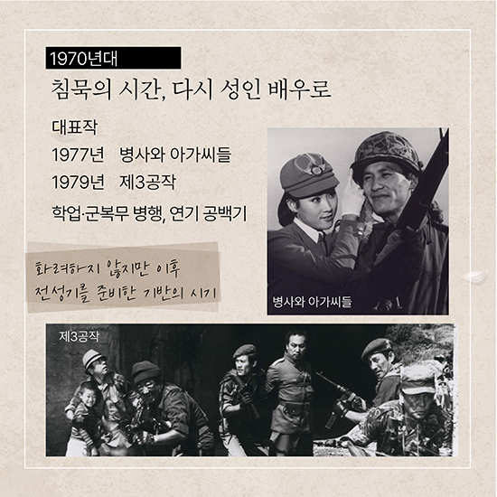 ±¹¹Î¹è¿ì ¾È¼º±â(74)°¡ 5ÀÏ ¼¼»óÀ» ¶°³µ´Ù. 1957³â ¿µÈ 'Ȳȥ¿Â÷'·Î µ¥ºßÇÑ ±×´Â ¾Æ¿ªºÎÅÍ ¼ºÀÎ ¹è¿ì±îÁö 60¿© ³â°£ Çѱ¹ ¿µÈÀÇ ÇÑ ÃàÀ» ÁöÄѿ ±¹¹Î ¹è¿ì¿´´Ù. '¹Ù¶÷ ºÒ¾î ÁÁÀº ³¯', '¸¸´Ù¶ó', '°í·¡»ç³É'À» ÅëÇØ 1980³â´ë Çѱ¹ ¸®¾ó¸®Áò ¿µÈÀÇ »ó¡À¸·Î ÀÚ¸®¸Å±èÇßÀ¸¸ç, '½Ç¹Ìµµ', '¶óµð¿À ½ºÅ¸', 'ÇÑ»ê' µî ½Ã´ë¸¦ ´ëÇ¥ÇÏ´Â ÀÛǰ¿¡ Ã⿬Çß´Ù. ÀýÁ¦µÈ ¿¬±â¿Í ¹¬Á÷ÇÑ Á¸Àç°¨À¸·Î ½ºÅ©¸°¿¡ Àΰ£°ú ½Ã´ë¸¦ »õ±ä ±×´Â Çѱ¹ ¿µÈ»ç¿¡ ±æÀÌ ³²À» À̸§À¸·Î ±â¾ïµÉ °ÍÀÌ´Ù.