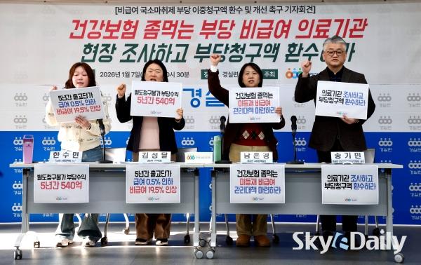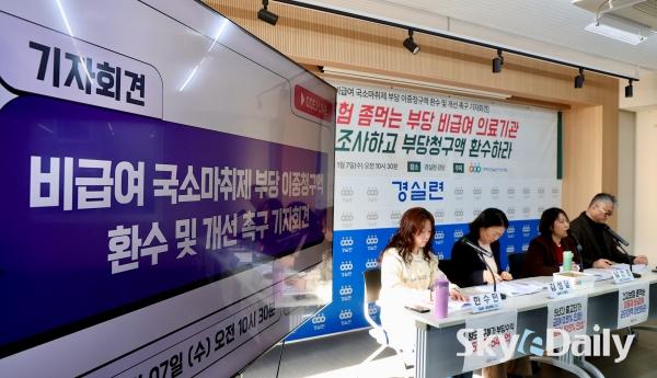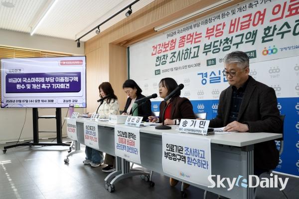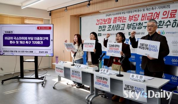 ¡ã 7ÀÏ ¿ÀÀü ¼¿ï Á¾·Î±¸ °æÁ¦Á¤ÀǽÇõ½Ã¹Î¿¬ÇÕ(°æ½Ç·Ã) °´ç¿¡¼ °æ½Ç·Ã Ȱµ¿°¡µéÀÌ ±âÀÚȸ°ßÀ» ¿°í "ÃÖ±Ù 5³â°£ Ãâ°íµÈ ºñ±Þ¿© ±¹¼Ò¸¶ÃëÁ¦°¡ ¸ðµÎ »ç¿ëµÆ´Ù°í °¡Á¤ÇÒ °æ¿ì ¾à 544¾ï¿ø ±Ô¸ðÀÇ ºÎ´ç û±¸ ÇÇÇØ°¡ ¹ß»ýÇßÀ» °ÍÀ¸·Î ÃßÁ¤µÈ´Ù"¸ç °Ç°º¸Çè¿¡¼ ÀÌ¹Ì Æ÷ÇÔµÈ ±¹¼Ò¸¶ÃëÁ¦ ºñ¿ëÀ» ȯÀÚ¿¡°Ô ºñ±Þ¿©·Î ÀÌÁß Ã»±¸ÇÑ ÀÇ·á±â°üÀÇ ºÎ´ç ÇàÀ§¸¦ ÁöÀûÇÏ¸é¼ Á¤ºÎÀÇ È¯¼ö Á¶Ä¡¿Í Á¦µµ °³¼±À» Ã˱¸Çß´Ù. ¹Ú¹Ì³ª ±âÀÚ ¨Ï½ºÄ«À̵¥Àϸ®