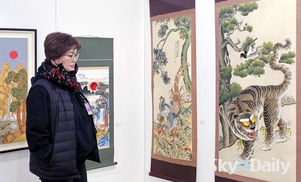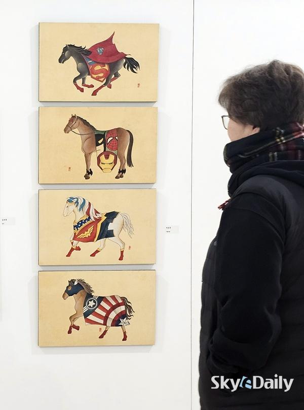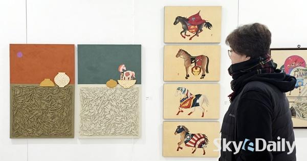 ¡ã °æ¿À³â »õÇØ¸¦ ¸Â¾Æ 7ÀÏ ±¹È¸¿¡¼­ ¿­¸®°í ÀÖ´Â ¡®¼¼È­(á¨ûþ)¡¯ Àü½Ãȸ¿¡¼­ °ü¶÷°´ÀÌ ÀÛǰÀ» °¨»óÇϰí ÀÖ´Ù. ¼¼È­´Â »õÇØ¸¦ ¸Â¾Æ ¾Ç±Í¸¦ ÂÑ°í º¹À» ±â¿øÇÏ¸ç ºÙÀÌ´ø ÀüÅë ¹ÎÈ­ÀÌ´Ù. ±¹È¸ ÀÇ¿øÈ¸°ü¿¡¼­ 10ÀϱîÁö ¿­¸°´Ù. ÀÌÁ¾¿ø ±âÀÚ ¨Ï½ºÄ«À̵¥Àϸ®
