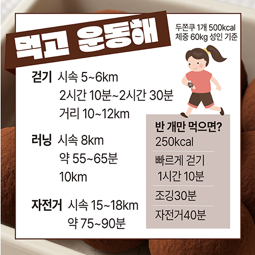 µÎ¹ÙÀÌ Â˵æ ÄíŰ, ÀÏ¸í ¡®µÎÂËÄí¡¯´Â °ÑÀº ¹Ù»èÇÏ°í ¼ÓÀº Â˵æÇÑ ½Ä°¨À¸·Î Å« Àα⸦ ²ø°í ÀÖ´Ù. ÁøÇÑ ÃÊÄݸ´°ú °ß°ú·ù°¡ ¾î¿ì·¯Á® ÇÑ ÀÔ¸¸À¸·Îµµ ¸¸Á·°¨À» ÁÖÁö¸¸, ÇÑ °³´ç Ä®·Î¸®´Â ¾à 500kcal ¾ÈÆÆÀ¸·Î »ó´çÈ÷ ³ôÀº ÆíÀÌ´Ù. ¹öÅÍ¿Í ¼³ÅÁ, ÃÊÄݸ´ÀÌ ¸¹ÀÌ µé¾î°¡´Â ¸¸Å­ °ú´Ù ¼·Ãë´Â °Ç°­¿¡ ºÎ´ãÀÌ µÉ ¼ö ÀÖ´Ù. Àü¹®°¡µéÀº µÎÂËÄí¸¦ ÇÏ·ç ¹Ý °³ Á¤µµ·Î ³ª´² ¸Ô°í, ½ÄÈÄ µðÀúÆ®·Î Áñ±æ °ÍÀ» ±ÇÇÑ´Ù. ƯÈ÷ ¼·Ãë ÈÄ¿¡´Â °È±â³ª °¡º­¿î Á¶±ë µî ¿îµ¿À¸·Î Ä®·Î¸®¸¦ ¼Ò¸ðÇÏ´Â ½À°üÀÌ Áß¿äÇÏ´Ù. Àû´çÈ÷ Áñ±â°í ¸öÀ» ¿òÁ÷ÀÎ´Ù¸é µÎÂËÄíÀÇ ´ÞÄÞÇÔÀ» °Ç°­ÇÏ°Ô ´©¸± ¼ö ÀÖ´Ù.