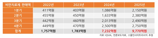±¹³» ºñ¸¸Ä¡·áÁ¦ ½ÃÀåÀº Áö³ 2023³â±îÁö 2000¾ï¿ø ¹Ì¸¸ ¼öÁØ¿¡ ¸Ó¹°·¶À¸³ª Áö³ÇØ ¾à 1Á¶¿ø ±Ô¸ð·Î ±Þ¼ºÀåÇÑ °ÍÀ¸·Î ºÐ¼®µÆ´Ù.