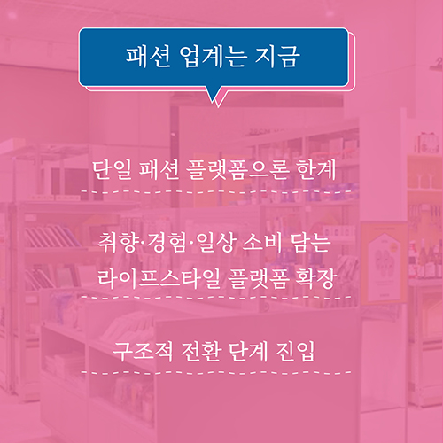 ±¹³» ÁÖ¿ä ÆÐ¼Ç Ç÷§ÆûµéÀÌ ÀÇ·ù Á᫐ ±¸Á¶¿¡¼ ¹þ¾î³ª ½Äǰ¡¤°¡±¸¡¤ºäƼ µî ºñÆÐ¼Ç ¿µ¿ªÀ¸·Î »ç¾÷À» È®ÀåÇÏ¸ç ¡®¶óÀÌÇÁ½ºÅ¸ÀÏ Ç÷§Æû¡¯À¸·Î ÁøÈÇϰí ÀÖ´Ù. ÆÐ¼Ç ½ÃÀå ħü¿Í ½¬ÀÎ µî Áß±¹¹ß CÄ¿¸Ó½ºÀÇ Àú°¡ °ø¼¼¿¡ ´ëÀÀÇϱâ À§ÇÑ Àü·«ÀÌ´Ù. 29CM´Â ¸®ºù¡¤Å°ÁǪµå È®ÀåÀ¸·Î Áö³ÇØ °Å·¡¾× 1Á¶3000¾ï ¿øÀ» ±â·ÏÇß°í, ¿¡ÀÌºí¸®¿Í Áö±×Àç±×´Â Ǫµå¿Í ºäƼ¸¦ ¾Õ¼¼¿ö ü·ù ½Ã°£°ú À籸¸Å¸¦ ´Ã¸®°í ÀÖ´Ù. ¾÷°è´Â ÀÌ·¯ÇÑ º¯È°¡ ÀϽÃÀû Æ®·»µå¸¦ ³Ñ¾î ±¸Á¶Àû Àüȯ ´Ü°è¿¡ Á¢¾îµé¾ú´Ù°í º¸°í ÀÖ´Ù.