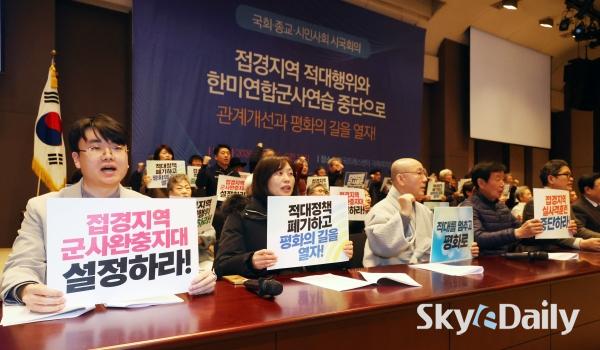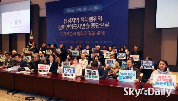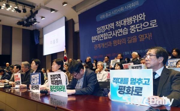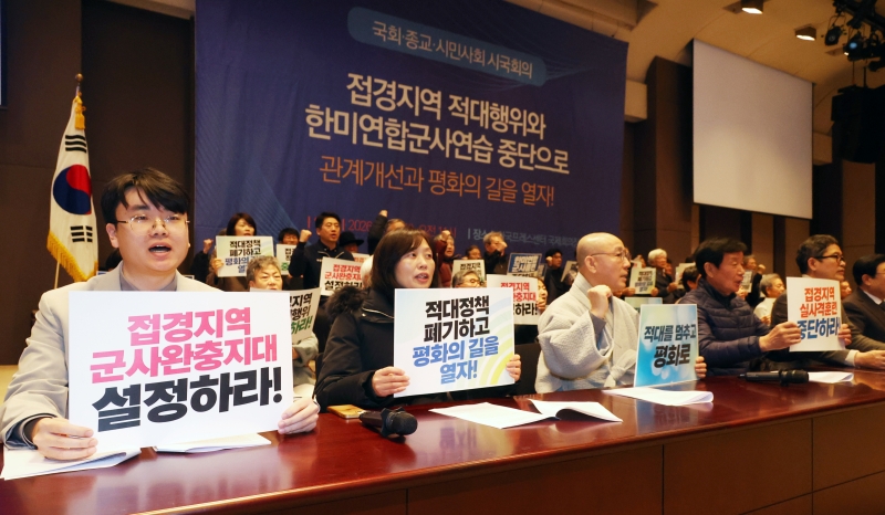¡ã 20ÀÏ ¼­¿ï Áß±¸ ÇÁ·¹½º¼¾ÅÍ ±¹Á¦È¸ÀÇÀå¿¡¼­ ¡®Àû´ëÁ¾½Ä ÆòÈ­Çù·ÂÃ˱¸ ±¹È¸, Á¾±³, ½Ã¹Î»çȸ ½Ã±¹È¸ÀÇ¡¯ °¡ ¿­·È´Ù. À̳¯ ¿­¸° ½Ã±¹È¸ÀÇ¿¡¼­´Â ³²ºÏ ´ëÈ­°¡ Àå±â°£ ´ÜÀýµÇ°í ¿ì¸®Ãø ¹Î°£ÀÎ ¹«ÀαⰡ ºÏÇÑÀ» ħÅõÇÏ´Â µî ±º»çÀû ±äÀåÀÌ Áö¼ÓµÇ´Â °¡¿îµ¥ ÇѹݵµÀÇ ±º»ç°¥µî ÇØ¼Ò ¹× °ü°è Á¤»óÈ­¿Í ÆòÈ­ ±¸ÃàÀ» À§ÇØ °³ÀÎ, ±¹È¸ÀÇ¿ø°ú 357°³ÀÇ ½Ã¹Î´ÜüµéÀÌ ¶æÀ» ¸ð¾Ò´Ù.  ¹Ú¹Ì³ª ±âÀÚ ¨Ï½ºÄ«À̵¥Àϸ®
