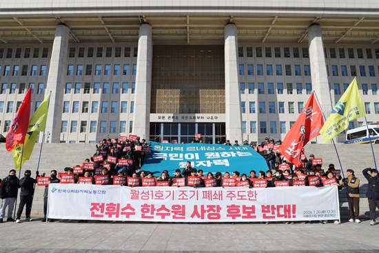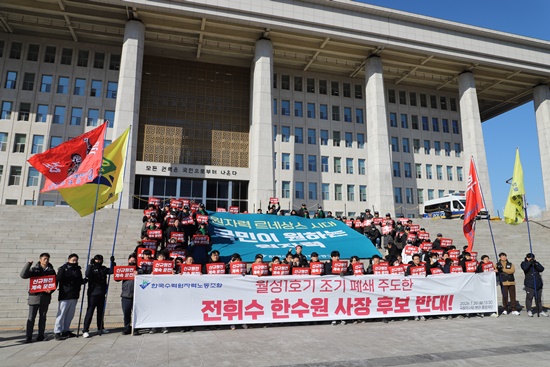 Çѱ¹¼ö·Â¿øÀڷ³뵿Á¶ÇÕ(ÀÌÇÏ ÇѼö¿ø³ëÁ¶)ÀÌ ±¹È¸¿¡¼ °áÀÇ´ëȸ¸¦ ¿°í ÇѼö¿ø Â÷±â »çÀå Àμ±°ú °ü·ÃÇØ ¡°¿øÀÚ·Â ºñÀü¹®°¡ ¶Ç´Â Å»¿øÀü Á¤Ã¥°ú ¿øÀü »ýÅÂ°è ÆÄ±«¿¡ ¿¬°üµÈ Àλ簡 ¼öÀåÀ» ¸Ã¾Æ¼± ¾È µÈ´Ù¡±°í Ã˱¸Çß´Ù. ³ëÁ¶´Â ƯÁ¤ Èĺ¸ÀÚµéÀ» Á÷Á¢ °Å·ÐÇÏ¸ç ¡°ºÎÀûÀýÇÑ Àμ±ÀÌ °ÇàµÉ °æ¿ì û¿Í´ë ¾Õ ´Ü½ÄÅõÀï±îÁö Æ÷ÇÔÇÑ °°æ ´ëÀÀ¿¡ ³ª¼³ ¼ö ÀÖ´Ù¡±°í ¹àÇû´Ù.
