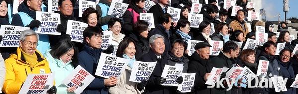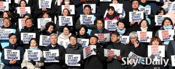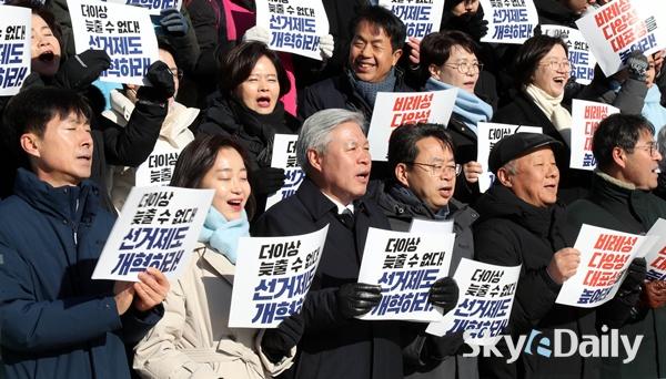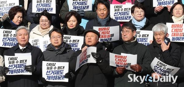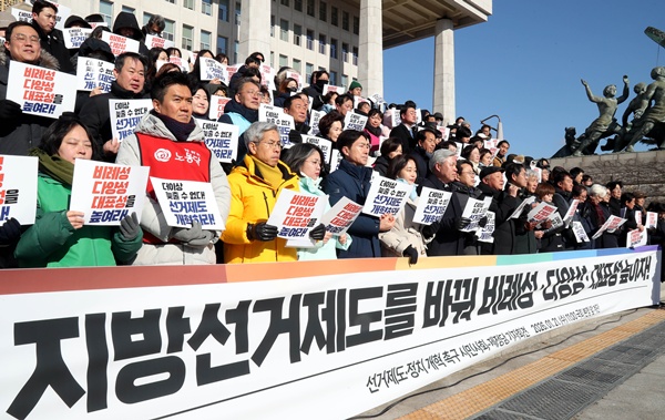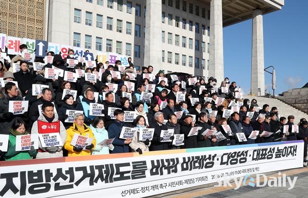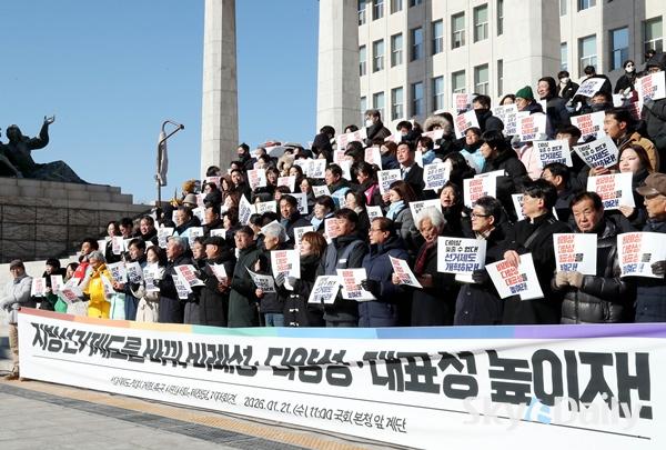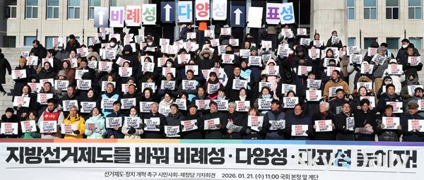 ¡ã ½Ã¹Î»çȸ´Üü¿Í ¿©¾ß Á¤´ç °ü°èÀÚµéÀÌ 21ÀÏ ¼¿ï ¿©Àǵµ ±¹È¸ º»Ã» ¾Õ °è´Ü¿¡¼ ±âÀÚȸ°ßÀ» ¿°í, Áö¹æ¼±°ÅÁ¦µµÀÇ ºñ·Ê¼º°ú ´Ù¾ç¼º, ´ëÇ¥¼º °È¸¦ À§ÇÑ ¼±°ÅÁ¦µµ¡¤Á¤´ç °³ÇõÀ» Ã˱¸Çϰí ÀÖ´Ù. Âü¼®ÀÚµéÀº 2026³â Áö¹æ¼±°Å¸¦ ¾ÕµÎ°í ¼±°Å±¸ ȹÁ¤ Áö¿¬°ú ¾ç´ç µ¶Á¡ ±¸Á¶°¡ Áö¹æÀÚÄ¡ÀÇ ÃëÁö¸¦ ÈѼÕÇϰí ÀÖ´Ù¸ç, Á¦µµ °³¼±À» ¿ä±¸Çß´Ù. ÀÌÁ¾¿ø ±âÀÚ ¨Ï½ºÄ«À̵¥Àϸ®