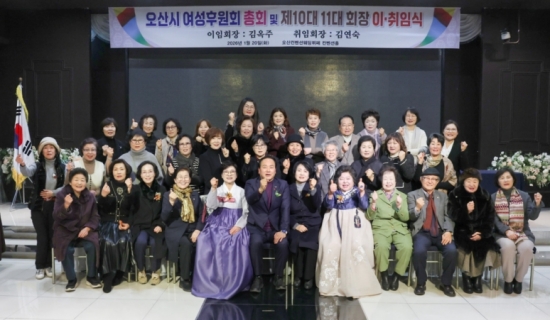 °æ±âµµ ¿À»ê½Ã¿©¼ºÈÄ¿øÈ¸´Â 20ÀÏ ¿À»ê ÄÁº¥¼Ç¿þµùȦ¿¡¼­ Á¤±âÃÑȸ¿Í ÇÔ²² Á¦10´ë ±è¿ÁÁÖ È¸Àå ÀÌÀÓ½Ä ¹× Á¦11´ë ±è¿¬¼÷ ȸÀå ÃëÀÓ½ÄÀ» °³ÃÖÇß´Ù.