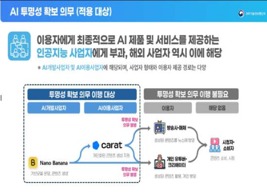 ±ÔÁ¦ ´ë»óÀº ÀΰøÁö´É ¸ðµ¨À» °³¹ßÇϰųª À̸¦ Ȱ¿ëÇØ ¼ºñ½º¸¦ Á÷Á¢ Á¦°øÇÏ´Â ±â¾÷°ú »ç¾÷ÀÚ´Ù. ±¹³» ÀÌ¿ëÀÚ¸¦ ´ë»óÀ¸·Î AI Á¦Ç°¡¤¼ºñ½º¸¦ Á¦°øÇÏ´Â ÇØ¿Ü »ç¾÷ÀÚµµ Àû¿ë ´ë»ó¿¡ Æ÷ÇԵȴÙ. ´Ù¸¸ AI ¼ºñ½º¸¦ ´Ü¼øÇÑ µµ±¸·Î »ç¿ëÇÏ´Â ¼ÒºñÀÚ³ª ÀÌ¿ëÀÚ´Â Á¦¿ÜµÈ´Ù.
