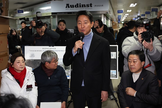 ¿À¼¼ÈÆ ¼¿ï½ÃÀåÀÌ Àç°³¹ßÀÌ ÃßÁø ÁßÀÎ ¿ë»êÀüÀÚ»ó°¡ ÇöÀåÀ» ã¾Æ »óÀΡ¤¼ÒÀ¯ÁÖµé°ú °£´ãȸ¸¦ ¿°í ¡°¿µ¾÷ ÇÇÇØ¸¦ ÃÖ¼ÒÈÇϰڴ١±¸ç ¼ÒÅë ⱸ¸¦ »ó½Ã ¿î¿µÇÏ°Ú´Ù°í ¹àÇû´Ù. ´Ù¸¸ ÇöÀå ¼ÒÀ¯ÁÖµéÀÌ ¿ä±¸ÇÑ ÁÖÅà ºñÁß È®´ë¿¡ ´ëÇØ¼´Â ¡°´çÃÊ ¸ñÇ¥¿Í´Â ¸ÂÁö ¾Ê´Â´Ù¡±¸ç ½Å»ê¾÷ °ÅÁ¡ À°¼º ±âÁ¶¸¦ ÀçÈ®ÀÎÇß´Ù.