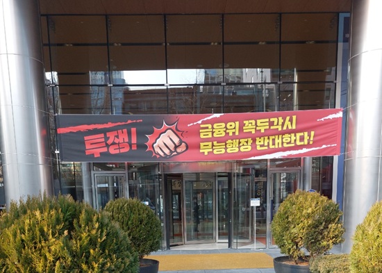 ±â¾÷ÀºÇà ³ëµ¿Á¶ÇÕÀº À̳¯ ¿ÀÀü 8½ÃºÎÅÍ º»Á¡ ÃâÀÔÀ» Â÷´ÜÇϰí üºÒÀÓ±Ý ¹®Á¦ ÇØ°áÀ» ¿ä±¸Çß´Ù. ³ëÁ¶¿øµéÀº Àå ÇàÀåÀ» ÇâÇØ "ºó¼Õ ÇàÀå ¹Ý´ë", "´ëÅë·ÉÀÇ ¾à¼ÓÀ» ¹Þ¾Æ¿À¶ó" °í ¿ÜÃÆ´Ù.