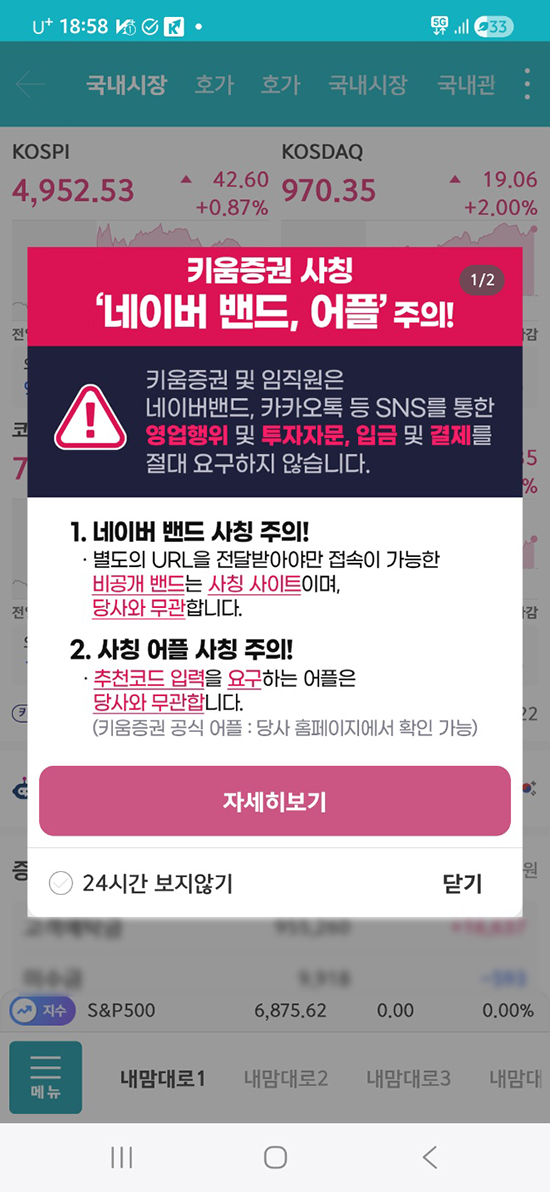 Ű¿òÁõ±Ç °ü°èÀÚ´Â ¡°Æ¯º°ÇÑ À̽´°¡ ÀÖ¾î¼ ÆË¾÷âÀ» ¶ç¿î °ÍÀº ¾Æ´Ï´Ù¡±¶ó¸ç ¡°Å°¿òÁõ±ÇÀ» »çÄªÇØ ºñ°ø°³ ³×À̹ö ¹êµå·Î À¯µµÇÏ´Â ÅõÀÚ»ç±â »ç·Ê°¡ ÀÖ¾î °æ°í Â÷¿ø¿¡¼ ¾Û ³» ÆË¾÷ ÇüÅ·Π°øÁö°¡ µÆ´Ù¡±°í ¸»Çß´Ù. ±×´Â ¡°13ÀÏ¿¡µµ ȨÆäÀÌÁö °øÁö»çÇ×À» ÅëÇØ °ü·Ã ÁÖÀÇ»çÇ×À» ¾È³»Çß´Ù¡±°í ¼³¸íÇß´Ù.
