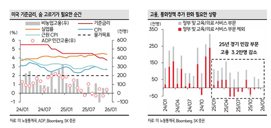 SKÁõ±Çµµ À̳¯ °ø°³ÇÑ ¡®1¿ù FOMC ÇÁ¸®ºä¡¯¿¡¼ ¹Ì±¹ ¿¬¹æÁغñÁ¦µµ(Fed)°¡ 1¿ù ȸÀÇ¿¡¼ ±âÁرݸ®¸¦ 3.50~3.75%·Î µ¿°áÇÒ °¡´É¼ºÀÌ Å©´Ù°í Àü¸ÁÇß´Ù. SKÁõ±ÇÀº ÀÎÇÏ »çÀÌŬÀÌ ÀÌ¹Ì 3ȸ ¿¬¼Ó ÁøÇàµÈ ¸¸Å °æÁ¦ ÆÝ´õ¸àÅÐÀ» È®ÀÎÇÏ´Â ¡®¼û °í¸£±â¡¯°¡ ÇÊ¿äÇÏ´Ù°í ºÃ°í, µ¿°á ±âÁ¶ ¼Ó¿¡¼ ¹ß¾ð ÅæÀÌ ¾à°£ ¸ÅÆÄÀûÀ¸·Î ³ª¿Ã ¿©Áöµµ ¿¾îµ×´Ù.