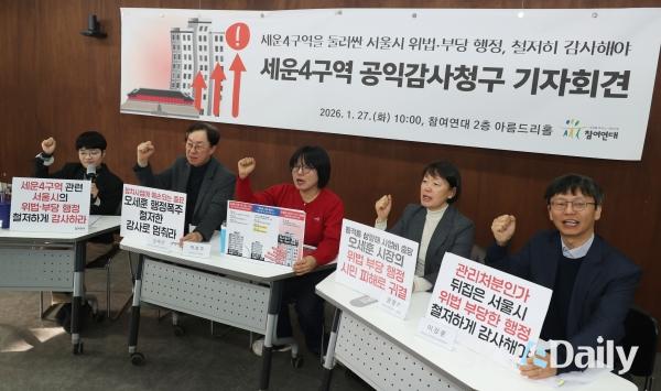 ¡ã Âü¿©¿¬´ë°¡ 27ÀÏ ¿ÀÀü Âü¿©¿¬´ë ¾Æ¸§µå¸®È¦¿¡¼ ¿¸° ¡®¼¼¿î4±¸¿ª °ü·Ã ¼¿ï½Ã °øÀͰ¨»çû±¸¡¯ ±âÀÚȸ°ß¿¡¼ ±¸È£¸¦ ¿ÜÄ¡°í ÀÖ´Ù. Âü¿©¿¬´ë´Â À̳¯ ±âÀÚȸ°ß¿¡¼ ¼¼¿îÀçÁ¤ºñÃËÁøÁö±¸ 4±¸¿ª(ÀÌÇÏ ¼¼¿î4±¸¿ª)°ú °ü·ÃÇØ ¼¿ï½Ã°¡ Àå±â°£ÀÇ ³íÀÇ¿Í ¹®ÈÀç ½ÉÀǸ¦ °ÅÃÄ Çü¼ºµÈ ±âÁ¸ ÇàÁ¤ ÆÇ´Ü°ú »ç¾÷ ÃßÁø °æ°ú¸¦ ½º½º·Î µÚÁý¾úÀ¸¸ç ±× °úÁ¤¿¡¼ ¼¼°è¹®ÈÀ¯»êÀÎ Á¾¹¦ÀÇ ¿ª»ç¹®Èȯ°æÀ» Áß´ëÇÏ°Ô ÈѼÕÇÒ ¿ì·Á°¡ Ä¿ °øÀͰ¨»ç¸¦ û±¸ÇÏ°Ô µÆ´Ù°í ¹àÇû´Ù. ¹Ú¹Ì³ª ±âÀÚ ¨Ï½ºÄ«À̵¥Àϸ®