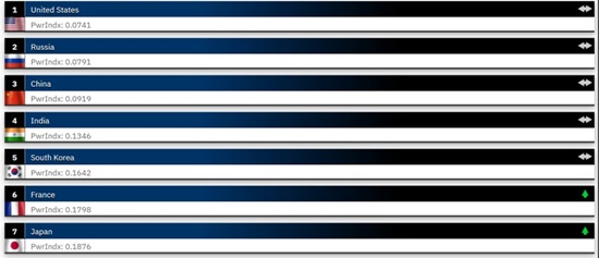 Àç·¡½Ä ±º»ç·Â ÃÖ»óÀ§±ÇÀº ¹Ì±¹(1À§), ·¯½Ã¾Æ(2À§), Áß±¹(3À§), Àεµ(4À§) ¼øÀ¸·Î, 2006³â ÀÌÈÄ 20¿© ³â°£ ¼øÀ§ º¯µ¿ÀÌ ¾ø¾ú´Ù. À̾î ÇÁ¶û½º(6À§), ÀϺ»(7À§), ¿µ±¹(8À§), Æ¢¸£Å°¿¹(9À§), ÀÌÅ»¸®¾Æ(10À§)°¡ µÚ¸¦ À̾ú´Ù.