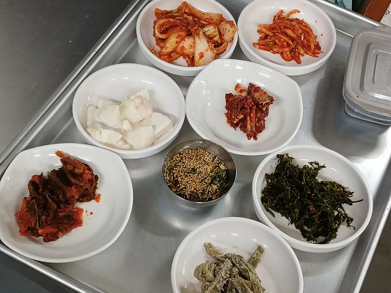 ¹Ø¹ÝÂùÀ¸·Î ²¿½Ã·¡±â, Å곪¹°, ¹«»ýä, °«±èÄ¡, ¹èÃß±èÄ¡, µ¿Ä¡¹Ì, ¾ç³ä°ÔÀå, ±Ã䳪¹° µîÀÌ Á¦°øµÈ´Ù. ¸ðµç À½½ÄÀ» Á÷Á¢ Áֹ濡¼ ¸¸µç´Ù. ƯÈ÷ ±èÄ¡´Â ¼öÁرÞÀ¸·Î ¿õ¼þ±íÀº ¼Õ¸ÀÀ» ÀÚ¶ûÇÑ´Ù. ±¼Ä®±¹¼ö¸¦ ¿©·µÀÌ ³ª´² ¸ÔÀ» ¹«·Æ ±¼¼Ü¹äÀÌ ¸¶Áö¸·À¸·Î µîÀåÇÑ´Ù. ¶Ñ²±À» ¿©´Ï ¹ä°ú ±¼ÀÌ ¾î¿ì·¯Áø °í¼ÒÇÑ ÇâÀÌ ±è°ú ÇÔ²² ¸ð¶ô¸ð¶ô ¿Ã¶ó¿Â´Ù. ±¼Àº ÃÎÃÎÇÏ°Ô µ¤¿© ÀÖ°í °®Àº ä¼Ò°¡ ÇÔ²² Ç« À;ú´Ù.