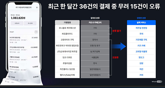 ±è ´ëÇ¥´Â ¶Ç º¸Çè·á¡¤Åë½Åºñó·³ ºñ±³Àû ¸íÈ®ÇÑ Ç׸ñµµ ³õÄ£´Ù°í ÁöÀûÇß´Ù. Ä«µå¿¡¼ º¸Çè»ç·Î ºüÁ®³ª°£ ÀÌü°¡ ¡®º¸Ç衯À¸·Î ¹ÀÌÁö ¾Ê°Å³ª, ÈÞ´ëÀüÈ ¿ä±Ýó·³ °íÁ¤ÀûÀ¸·Î ³ª°¡´Â ÁöÃâÀÌ Åë½Åºñ·Î ÀâÈ÷Áö ¾Ê°Å³ª Ä¿ÇÇ Àü¹®Á¡ °áÁ¦µµ Ä«Æä·Î ºÐ·ùµÇÁö ¾Ê°í ¡®±âŸ¡¯·Î ºÐ·ùµÇ´Â °Íµµ µ¿Àϼ±»ó¿¡ ÀÖ´Ù.