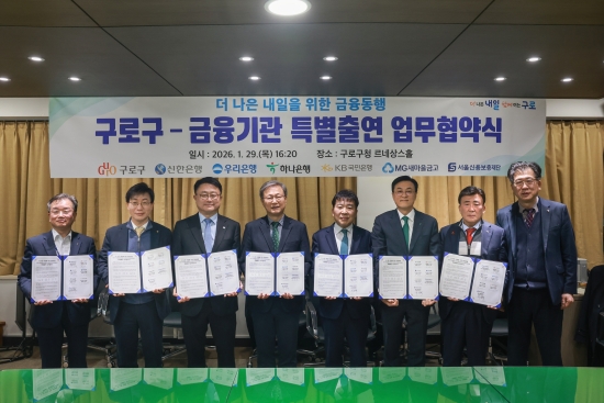 ¼¿ï½Ã ±¸·Î±¸°¡ Áö³´Þ 29ÀÏ ±¸Ã» 3Ãþ ¸£³×»ó½ºÈ¦¿¡¼ ½ÅÇÑÀºÇࡤ¿ì¸®ÀºÇࡤÇϳªÀºÇࡤ±¹¹ÎÀºÇࡤ»õ¸¶À»±Ý°í¡¤¼¿ï½Å¿ëº¸ÁõÀç´Ü°ú ¡®´õ ³ªÀº ³»ÀÏÀ» À§ÇÑ ±ÝÀ¶µ¿Ç࡯ Ưº°Ã⿬ Çù¾àÀ» ü°áÇϰí ÃÑ 212¾ï5000¸¸ ¿ø ±Ô¸ðÀÇ Áß¼Ò±â¾÷¡¤¼Ò»ó°øÀΠƯ·Êº¸ÁõÀ» ÃßÁøÇÑ´Ù.