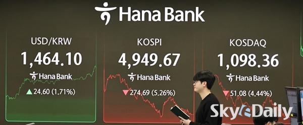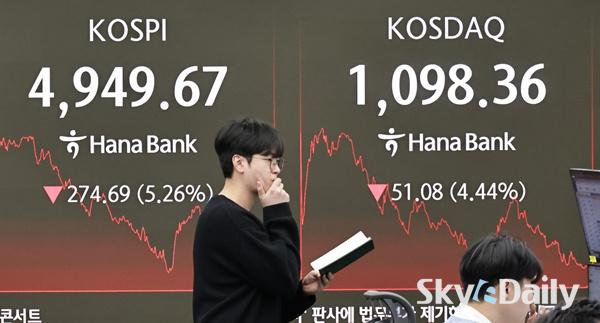 ¡ã ÄÚ½ºÇǰ¡ ÀüÀå Á¾°¡º¸´Ù 274.69 Æ÷ÀÎÆ®(5.26%) Ç϶ôÇϸç 4949.67·Î, ÄÚ½º´ÚÀº 51.08 Æ÷ÀÎÆ®(4.44%) Ç϶ôÇÑ 1098.36À¸·Î ¸¶°¨ÇÑ °¡¿îµ¥, 2ÀÏ ¼¿ï Áß±¸ ÇϳªÀºÇົÁ¡ µô¸µ·ë¿¡¼ Á÷¿øµéÀÌ ¾÷¹«¸¦ º¸°í ÀÖ´Ù. À̳¯ ¡®¿ö½Ã ¼îÅ©¡¯ µî ±Û·Î¹ú ¾ÇÀç°¡ ±¹³» Áõ½Ã¸¦ °Å¸ÇÑ ÄÚ½ºÇÇ´Â Áö³´Þ ¡®5000¼±¡¯ ù µ¹ÆÄ ÀÌÈÄ 4°Å·¡ÀÏ ¸¸¿¡ 5000¼± ¹ØÀ¸·Î ³»·Á°£ °ÍÀÌ´Ù. ÀÌÁ¾¿ø ±âÀÚ ¨Ï½ºÄ«À̵¥Àϸ®