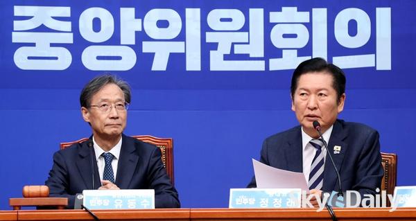 ¡ã Á¤Ã»·¡ ´õºÒ¾î¹ÎÁÖ´ç ´ëÇ¥°¡ 2ÀÏ ±¹È¸¿¡¼ ¿¸° ÃÖ°íÀ§¿øÈ¸ÀÇ¿¡¼ ¹ß¾ðÇϰí ÀÖ´Ù. ´õºÒ¾î¹ÎÁÖ´ç°ú Á¶±¹Çõ½Å´çÀÇ ÇÕ´ç ÃßÁø¿¡ ´ëÇÑ Ä£¸í°èÀÇ ¹Ý¹ßÀÌ ¹øÁö°í ÀÖ´Â °¡¿îµ¥ Á¤ ´ëÇ¥´Â À̳¯ ¡°ÅëÇÕÀº ÈûÀ» ÇÕÄ¡ÀÚ´Â °ÍÀÌ°í ºÐ¿Àº ÈûÀ» »©ÀÚ´Â °Í¡±À̶ó¸ç ¡°ÅëÇÕÀÌ ºÐ¿À̶ó´Â ¸»Àº ¾ð¾î ¸ð¼øÀÌÀÚ ¡®¶ß°Å¿î ¾ÆÀ̽ºÅ©¸²¡¯°ú °°Àº Çü¿ë ¸ð¼ø¡±¶ó°í ¸»Çß´Ù. ÀÌÁ¾¿ø ±âÀÚ ¨Ï½ºÄ«À̵¥Àϸ®
