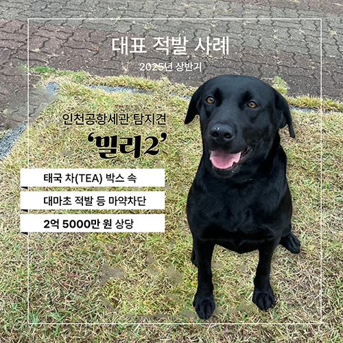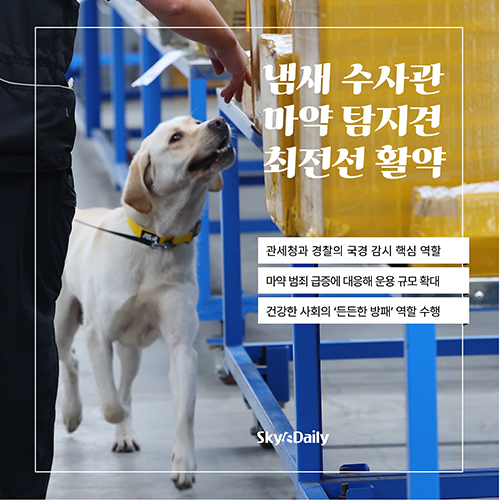 °ü¼¼Ã» °ü¼¼±¹°æÀÎÀç°³¹ß¿ø ŽÁö°ßÈÆ·Ã¼¾ÅÍ¿¡¼ ¾ç¼ºµÈ ¸¶¾à ŽÁö°ßµéÀÌ ±¹³» ¸¶¾à ¹Ð¹ÝÀÔ Â÷´ÜÀÇ ÇÙ½É ¿ªÇÒÀ» Çϰí ÀÖ´Ù. °ü¼¼Ã»¿¡ µû¸£¸é 2020³âºÎÅÍ 2024³â±îÁö Àüü ¸¶¾à ´Ü¼Ó ¾à 4000¿© °Ç °¡¿îµ¥ ŽÁö°ßÀÌ Á÷Á¢ Àû¹ßÇÑ »ç·Ê´Â 480¿© °ÇÀ¸·Î, ÀüüÀÇ ¾à 11.8%¸¦ Â÷ÁöÇß´Ù. ŽÁö°ßÀº X-ray Àåºñ·Î ½Äº°ÀÌ ¾î·Á¿î ½Äǰ¡¤ÀüÀÚ±â±â¡¤È¹° ¼Ó Àº´Ð ¸¶¾àÀ» Èİ¢À¸·Î ã¾Æ³»´Â °Á¡À» Áö³æ´Ù. ƯÈ÷ 2023³â¿¡´Â 70¿© °ÇÀÇ ¸¶¾à Àû¹ß¿¡ ±â¿©ÇßÀ¸¸ç, ÀÎõ°øÇ× µî ÁÖ¿ä °ü¹®¿¡¼ ´Ü¼Ó ¼º°ú¸¦ À̾°í ÀÖ´Ù. °ü¼¼Ã»Àº ±ÞÁõÇÏ´Â ¸¶¾à ŽÁö ¼ö¿ä¿¡ ´ëÀÀÇÏ¿© ŽÁö°ßÀ» 2027³â±îÁö 140µÎ ÀÌ»ó(2028³â 150µÎ)À¸·Î ´ëÆø È®´ë ¾ç¼ºÇÒ °èȹÀÌ´Ù.