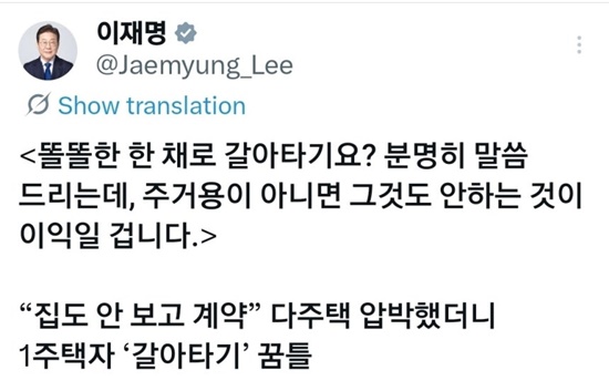 ÀÌ ´ëÅë·ÉÀº 5ÀÏ »õº® ÀÚ½ÅÀÇ SNS¿¡ °ü·Ã ±â»ç¸¦ °øÀ¯ÇÏ¸ç ¡°¶Ê¶ÊÇÑ ÇÑ Ã¤·Î °¥¾ÆÅ¸±â? ºÐ¸íÈ÷ ¸»¾¸µå¸®´Âµ¥, ÁÖ°Å¿ëÀÌ ¾Æ´Ï¸é ±×°Íµµ ¾È ÇÏ´Â °ÍÀÌ ÀÌÀÍÀÏ °Í¡±À̶ó°í ¹àÇû´Ù.