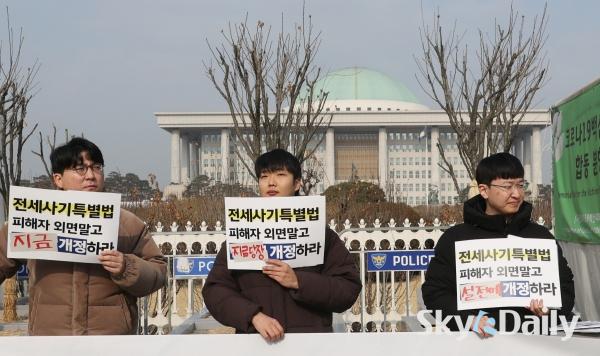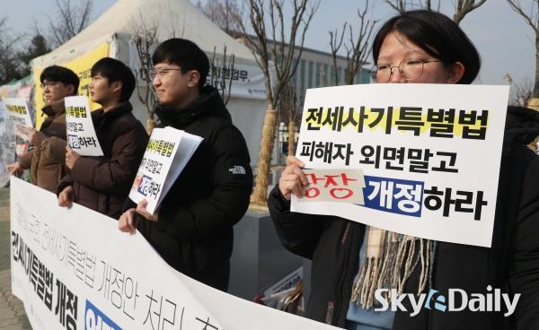 ¡ã Àü¼¼»ç±â¡¤±øÅëÀü¼¼ ÇÇÇØÀÚ Àü±¹´ëÃ¥À§¿øÈ¸°¡ 5ÀÏ ¿ÀÀü ±¹È¸ Á¤¹® ¾Õ¿¡¼ ±âÀÚȸ°ßÀ» ¿°í 2¿ù Àӽà ±¹È¸¿¡¼ Àü¼¼»ç±âƯº°¹ý °³Á¤¾ÈÀ» Á¶¼ÓÈ÷ ó¸®ÇÒ °ÍÀ» Ã˱¸Çϰí ÀÖ´Ù. ¹Ú¹Ì³ª ±âÀÚ ¨Ï½ºÄ«À̵¥Àϸ®