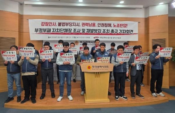 ¡ã Àü±¹°ø¹«¿ø³ëµ¿Á¶ÇÕ ºÎ»êÁö¿ªº»ºÎ°¡ ½ÃÀÇȸ ºê¸®Çη뿡¼­ ±âÀÚȸ°ßÀ» ¿­°í ¿ÀÀºÅà ³²±¸Ã»Àå°ú °ü·ÃÇÑ ÇàÁ¤¿î¿µ ¹®Á¦¿¡ ´ëÇÑ Á¶»ç¿Í Àç¹ß ¹æÁö´ëÃ¥ ¸¶·ÃÀ» Ã˱¸Çϰí ÀÖ´Ù. Àü±¹°ø¹«¿ø³ëµ¿Á¶ÇÕ ºÎ»êÁö¿ªº»ºÎ