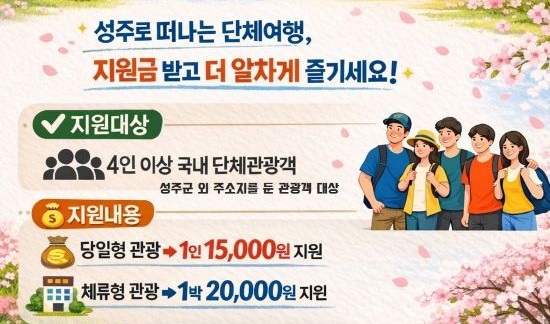 9ÀÏ ¼ºÁÖ±º¿¡ µû¸£¸é °ü¿Ü °ÅÁÖ 4ÀÎ ÀÌ»ó ±¹³» ´Üü°ü±¤°´ÀÌ ¼ºÁÖ¸¦ ¹æ¹®ÇÒ °æ¿ì 1Àδç 1¸¸ 5000¿øÀÇ °ü±¤ Àμ¾Æ¼ºê¸¦ ¹ÞÀ» ¼ö ÀÖÀ¸¸ç ÃÖ´ë 2¹Ú±îÁö ¸Ó¹«´Â ü·ùÇü °ü±¤°´¿¡°Ô´Â 1Àδç 2¸¸ ¿øÀÌ Áö±ÞµÈ´Ù. Áö¿øÀº ¿¹»ê ¼ÒÁø ½Ã±îÁö ÀÌ·ïÁø´Ù.