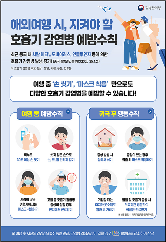 ¼³ ¿¬ÈÞ ±â°£ ÇØ¿Ü¿¡¼ ÀÔ±¹ÇÏ´Â ½Ã¹Î Áß ¹ß¿, ±âħ µî È£Èí±â Áõ»óÀÌ ÀÖ´Â °æ¿ì °Ë¿ª¼Ò¿¡¼ Äڷγª19 ¹× ÀÎÇ÷翣ÀÚ(µ¶°¨), Á¶·ùÀÎÇ÷翣ÀÚ(AI) µî¿¡ ´ëÇÑ À¯ÀüÀÚÁõÆø(PCR) °Ë»ç¸¦ ¹«·á·Î ¹ÞÀ» ¼ö ÀÖ´Ù. ¶ÇÇÑ µ±â¿ ÀÇ½É Áõ»ó(¹ß¿, µÎÅë, ±ÙÀ°Åë µî)ÀÌ ÀÖ´Â °æ¿ì¿¡µµ °Ë¿ª¼Ò¿¡¼½Å¼ÓŰƮ °Ë»ç¸¦ ¹«·á·Î ¹ÞÀ» ¼ö ÀÖ´Ù.