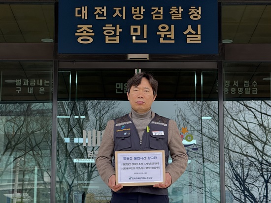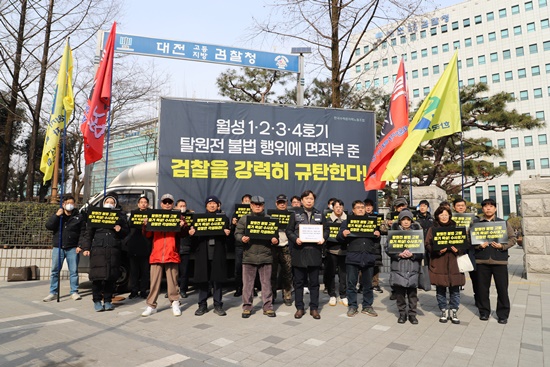 Çѱ¹¼ö·Â¿øÀڷ³뵿Á¶ÇÕ(À§¿øÀå °Ã¢È£)ÀÌ 10ÀÏ ´ëÀüÁö¹æ°ËÂûû Á¤¹® ¾Õ¿¡¼ ¡®Å»¿øÀü ¹üÁË»ç°Ç¿¡ ¸éÁ˺θ¦ ÁØ °ËÂû ±Ôź´ëȸ¡¯¸¦ ¿°í, °ËÂûÀÇ ºÒ±â¼Ò óºÐÀ¸·Î Á¾°áµÈ Å»¿øÀü °ü·Ã »ç°Ç 5°Ç¿¡ ´ëÇÑ Ç×°íÀåÀ» Á¢¼öÇß´Ù.
