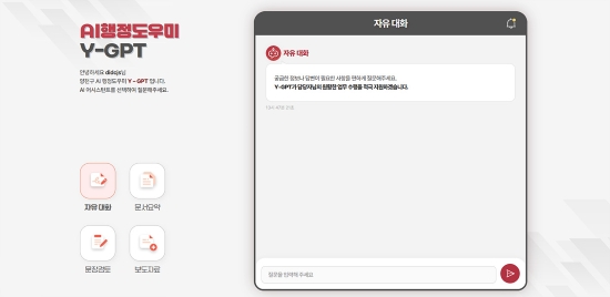 ¼¿ï½Ã ¾çõ±¸°¡ »ý¼ºÇü ÀΰøÁö´É(AI)À» ÇàÁ¤ ¾÷¹«¿¡ ¾ÈÀüÇϰí È¿À²ÀûÀ¸·Î Ȱ¿ëÇϱâ À§ÇØ ÀÚü AI ±â¹Ý ¾÷¹«Áö¿ø ½Ã½ºÅÛÀÎ ¡®Y-GPT¡¯¸¦ ±¸ÃàÇϰí 9ÀϺÎÅÍ º»°Ý ¿î¿µ¿¡ µé¾î°¬´Ù.