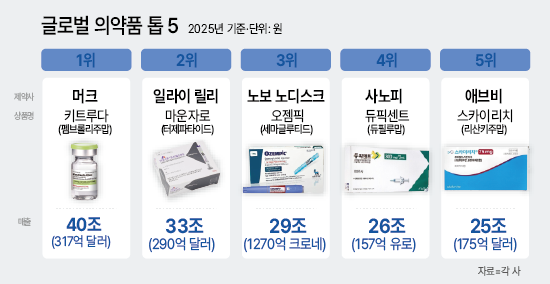 Áö³ÇØ ±Û·Î¹ú ÀǾàǰ ¸ÅÃâ »óÀ§ 5°³ ǰ¸ñÀº Ç׾ϡ¤ºñ¸¸¡¤¸é¿ªÁúȯ °è¿ÀÌ´Ù. ƯÈ÷ ¸é¿ªÇ×¾ÏÁ¦¿Í GLP-1 ±â¹Ý ºñ¸¸ Ä¡·áÁ¦°¡ ½ÃÀå ÆÇµµ¸¦ ÁÖµµÇÏ´Â ¸ð½ÀÀÌ´Ù.