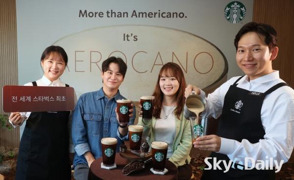 ¡ã 23ÀÏ ¼¿ï ¿ë»ê±¸ ½ºÅ¸¹÷½º ¾ÆÄ«µ¥¹Ì ¼¾ÅÍ¿¡¼ ¿¸° ¡®½ºÅ¸¹÷½º ¿¡¾î·ÎÄ«³ë Ãâ½Ã¡¯ »çÁøÇà»ç¿¡¼ Á÷¿øµéÀÌ ¿¡¾î·ÎÄ«³ë¸¦ ¼Ò°³Çϰí ÀÖ´Ù. ½ºÅ¸¹÷½º ÄÚ¸®¾Æ´Â ¿À´Â 26ÀÏ Àü ¼¼°è ½ºÅ¸¹÷½º ÃÖÃÊ·Î »õ·Î¿î ¹æ½ÄÀÇ ¾Æ¸Þ¸®Ä«³ë Ä¿ÇÇÀÎ ¡®¿¡¾î·ÎÄ«³ë¡¯¸¦ ¼±º¸ÀÌ¸ç ¡®¾ÆÀ̽º ¾Æ¸Þ¸®Ä«³ë¡¯, ¡®ÄÝµå ºê·ç¡¯¿¡ ÀÌÀº »õ·Î¿î ¾ÆÀ̽º Ä¿ÇÇ ÆÐ·¯´ÙÀÓÀ» Á¦½ÃÇÑ´Ù. ¹Ú¹Ì³ª ±âÀÚ ¨Ï½ºÄ«À̵¥Àϸ®