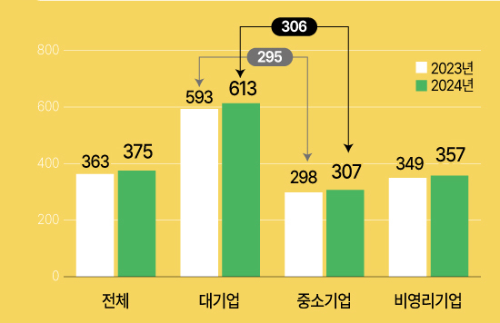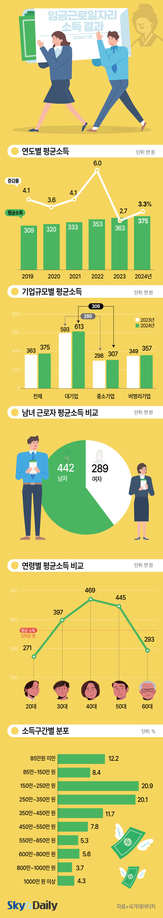 2024³â ´ë±â¾÷°ú Áß¼Ò±â¾÷ ±Ù·ÎÀÚ °£ ¿ùÆò±Õ ¼Òµæ °ÝÂ÷°¡ 300¸¸¿øÀ» ³Ñ¾î¼¹´Ù. ±¹°¡µ¥ÀÌÅÍó°¡ ¹ßÇ¥ÇÑ '2024³â ÀӱݱٷÎÀÏÀÚ¸® ¼Òµæ(º¸¼ö) °á°ú'¿¡ µû¸£¸é 2024³â ±âÁØ ÀӱݱٷÎÀÚ Æò±Õ¼ÒµæÀº 375¸¸¿ø, ÁßÀ§¼ÒµæÀº 288¸¸¿øÀ¸·Î Áý°èµÆ´Ù. ´ë±â¾÷ Æò±Õ¼ÒµæÀº 613¸¸¿ø, Áß¼Ò±â¾÷Àº 307¸¸¿øÀ¸·Î °ÝÂ÷´Â 306¸¸¿ø¿¡ ´ÞÇß´Ù. ¶ÇÇÑ ±ÝÀ¶¡¤º¸Çè¾÷°ú ¼÷¹Ú¡¤À½½Ä¾÷ °£ °ÝÂ÷µµ Å©°Ô ¹ú¾îÁö´Â µî ±¸Á¶Àû ÀÓ±Ý ¾ç±ØÈ°¡ Áö¼ÓµÇ´Â ¸ð½ÀÀÌ´Ù.