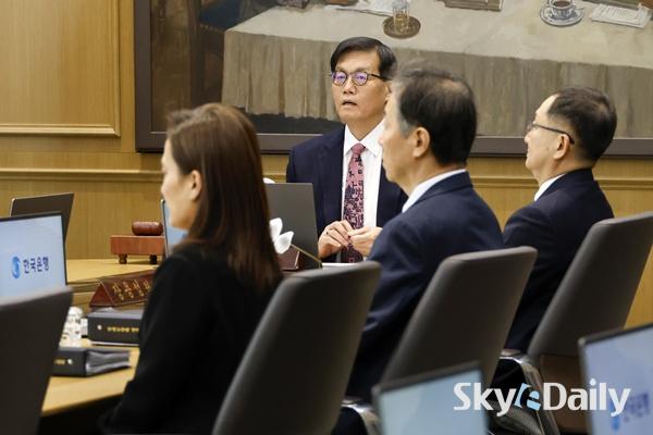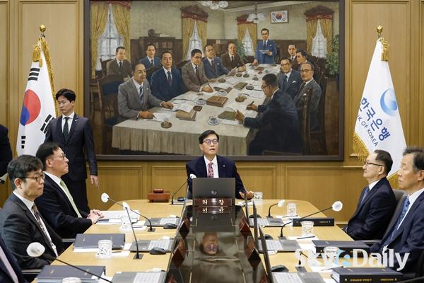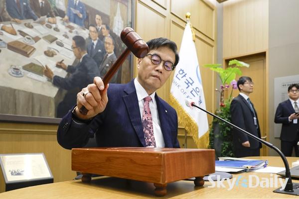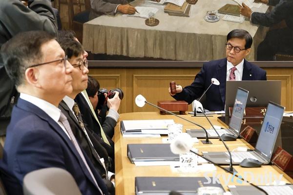 ¡ã ÀÌâ¿ë Çѱ¹ÀºÇà ÃÑÀç°¡ 26ÀÏ ¼¿ï Áß±¸ Çѱ¹ÀºÇà º»°ü¿¡¼ ¿¸° ±ÝÀ¶ÅëÈÀ§¿øÈ¸(ÀÌÇÏ ±ÝÅëÀ§) º»È¸ÀÇ¿¡¼ ÀÇ»çºÀÀ» µÎµå¸®°í ÀÖ´Ù. ±ÝÅëÀ§´Â À̳¯ ±âÁرݸ®¸¦ ¿¬ 2.50%·Î À¯ÁöÇß´Ù. ¿¹»óº¸´Ù °ÇÑ ¹ÝµµÃ¼ µî ¼öÃâ È£Á¶¸¦ ¹Ý¿µÇØ ÇÑÀºÀÌ ¿ÃÇØ ¼ºÀå·ü Àü¸ÁÄ¡¸¦ ±âÁ¸ 1.8%¿¡¼ 2.0%·Î ¿Ã¸° ¸¸Å, ±ÝÅëÀ§·Î¼´Â °æ±â ºÎ¾ç Â÷¿ø¿¡¼ ¶Ñ·ÇÇÑ ±Ý¸® ÀÎÇÏ ¸íºÐÀ» ãÁö ¸øÇÑ °ÍÀ¸·Î ÇØ¼®µÈ´Ù. »çÁø°øµ¿ÃëÀç´Ü