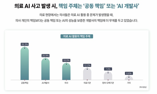 ¶Ç »ç°í ¹ß»ý ½Ã Ã¥ÀÓ ÁÖü¿¡ ´ëÇØ¼´Â ÀÇ»ç °³ÀÎ(18.0%)º¸´Ù´Â °øµ¿ Ã¥ÀÓ(35.3%)À̳ª AI °³¹ßȸ»ç Ã¥ÀÓ(26.9%)À̶ó´Â ÀνÄÀÌ »ó´ëÀûÀ¸·Î ³ô¾Ò´Ù.