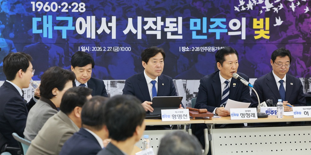 ¼Û¾ð¼® ¿ø³»´ëÇ¥´Â 27ÀÏ ±âÀÚ°£´ãȸ¿¡¼ ¡°±¹¹ÎÀÇÈûÀº ´ë±¸¡¤°æºÏ Àüü ÀÇ¿ø´ÔµéÀÇ ¶æ°ú ÀÇ¿øÃÑȸ °á°ú¿¡ µû¶ó, ´ë±¸¡¤°æºÏ ÇàÁ¤ÅëÇÕ ¹ý¾ÈÀ» À̹ø ±¹È¸ ³»¿¡ ó¸®ÇÒ ¼ö ÀÖµµ·Ï ¹ÎÁÖ´ç¿¡ Á¶¼ÓÇÑ ¹ý»çÀ§ °³ÃÖ¸¦ ¿äûÇß´Ù¡±°í ¹àÇû´Ù.