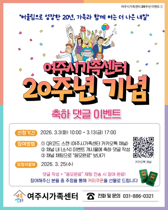 ¡ã ¿©Áֽð¡Á·¼¾ÅͰ¡ °³¼Ò 20ÁÖ³â ÃàÇÏ ´ñ±Û À̺¥Æ®¸¦ 13ÀϱîÁö ÁøÇàÇÑ´Ù. ¿©Áֽð¡Á·¼¾ÅÍ