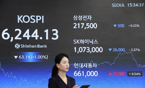 ¡ã 27ÀÏ ÄÚ½ºÇÇ Áö¼ö´Â Àü³¯ 6,307.27º¸´Ù ³»¸° 6.244.13À¸·Î ¸¶°¨Çß´Ù. ½ÅÇÑÀºÇà º»Á¡ ÇöȲÆÇ »çÁø=½ÅÇÑÀºÇà