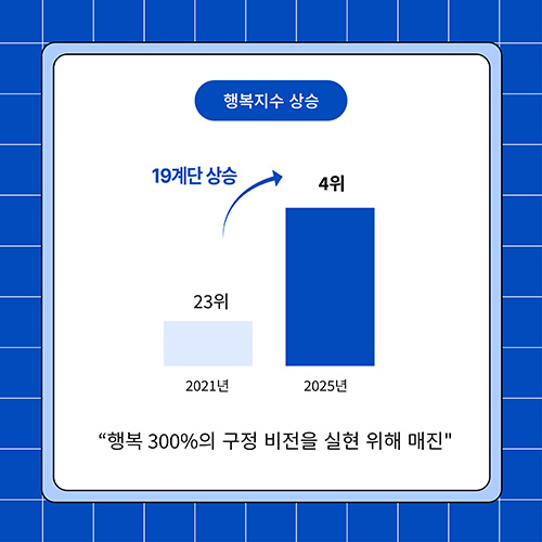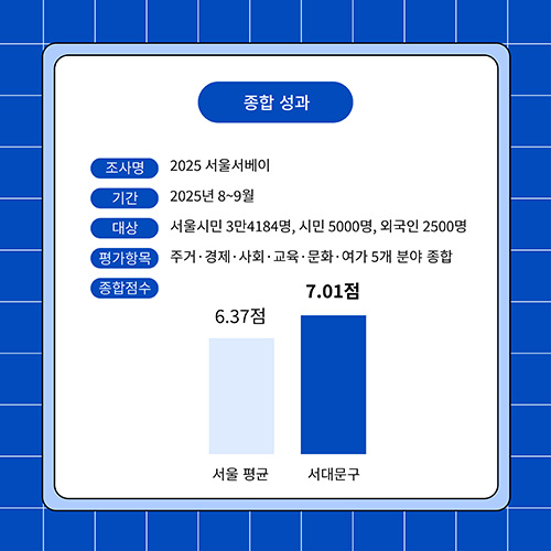 ¼´ë¹®±¸´Â ¼¿ïƯº°½Ã°¡ ¹ßÇ¥ÇÑ ¡®2025 ¼¿ï¼º£ÀÌ¡¯¿¡¼ »ýȰȯ°æ ¸¸Á·µµ 2³â ¿¬¼Ó 1À§¸¦ Â÷ÁöÇß´Ù. Á¾ÇÕÁ¡¼ö´Â 7.01Á¡À¸·Î ¼¿ï Æò±Õ(6.37Á¡)À» ¿ôµ¹¾Ò´Ù. ±³À°¡¤°æÁ¦ ºÐ¾ß 1À§, ¹®È¡¤¿©°¡ 2À§, ÁÖ°Å¡¤»çȸ 3À§¸¦ ±â·ÏÇßÀ¸¸ç, 10³â ÈÄ¿¡µµ °ÅÁÖ ÀÇÇâÀÌ ÀÖ´Ù´Â ÀÀ´äÀº 83.1%·Î ÀÚÄ¡±¸ Áß °¡Àå ³ô¾Ò´Ù. °ø¿ø¡¤³ìÁö ¸¸Á·µµ¿Í º¸Çàȯ°æ, Åë±Ù¡¤ÅëÇÐȯ°æµµ »óÀ§±ÇÀ» Â÷ÁöÇϸç Á¤Ã¥ È¿°ú¸¦ ÀÔÁõÇß´Ù.