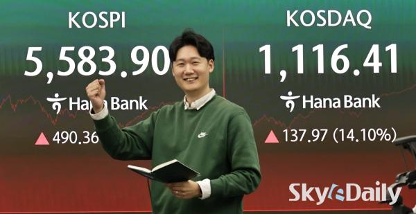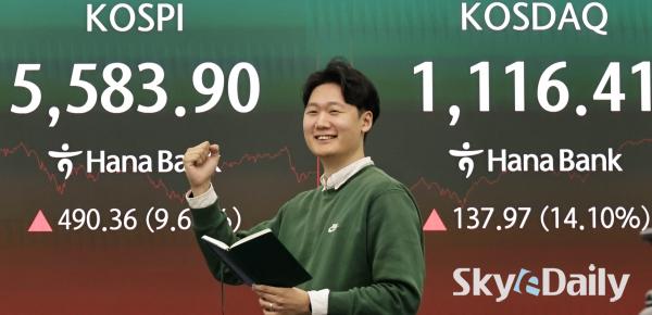 ¡ã ¹Ì±¹°ú À̶õ ÀüÀïÀ¸·Î ÀÌÆ² ¿¬¼Ó ±Þ¶ôÇß´ø ÄÚ½ºÇǰ¡ ¹Ýµî¿¡ ¼º°øÇϸç 9% ÀÌ»ó ±ÞµîÇß´Ù. 5ÀÏ ¼­¿ï Áß±¸ ÇϳªÀºÇà º»Á¡ Àü±¤ÆÇ¿¡ Áö¼ö°¡ ³ª¿À°í ÀÖ´Ù. À̳¯ ÄÚ½ºÇÇ´Â Àü °Å·¡ÀÏ(5093.54)º¸´Ù 490.36Æ÷ÀÎÆ®(9.63%) ¿À¸¥ 5583.90¿¡, ÄÚ½º´Ú Áö¼ö´Â Àü °Å·¡ÀÏ(978.44)º¸´Ù 137.97Æ÷ÀÎÆ®(14.10%) »ó½ÂÇÑ 1116.41¿¡ °Å·¡¸¦ ¸¶ÃÆ´Ù. ¹Ú¹Ì³ª ±âÀÚ ¨Ï½ºÄ«À̵¥Àϸ®