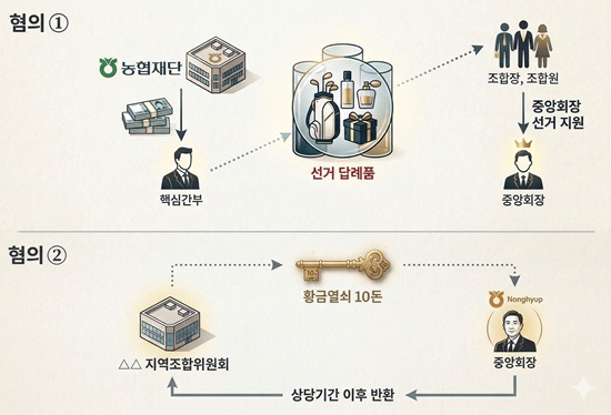 °È£µ¿ ³óÇùÁß¾ÓȸÀåÀÌ 580¸¸ ¿ø »ó´ç Ȳ±Ý¿¼è¸¦ ¼ö¼öÇÑ ÇøÀDZîÁö Á¤ºÎÀÇ °¨»ç¿¡ Àû½ÃµÇ´Â µî ³óÇùÁß¾Óȸ¿Í ÀÚȸ»ç, ȸ¿øÁ¶ÇÕ Àü¹ÝÀÇ ºñÀ§°¡ ºñ¸® ¹éÈÁ¡ ¼öÁØÀ¸·Î µå·¯³µ´Ù.