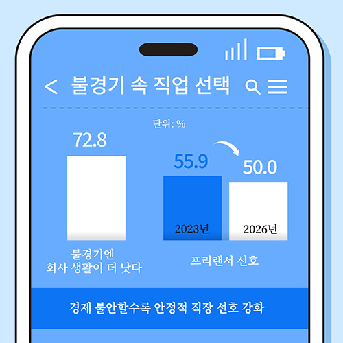 Ç÷§Æû ³ëµ¿ÀÌ È®»êµÇ°í ÀÖÁö¸¸ ´ëÁßÀû ÀÌÇØµµ´Â ¿©ÀüÈ÷ ³·Àº °ÍÀ¸·Î ³ªÅ¸³µ´Ù. ½ÃÀåÁ¶»ç±â°ü ¿¥ºê·¹ÀÎ Æ®·»µå¸ð´ÏÅͰ¡ Á÷¾÷ÀÎ 1000¸íÀ» Á¶»çÇÑ °á°ú ¡®Ç÷§Æû ³ëµ¿¡¯À» Á¤È®È÷ ÀÎÁöÇÑ ºñÀ²Àº 12.0%¿¡ ±×ÃÆ´Ù. ´Ù¸¸ °³³ä ¼³¸í ÈÄ È£°¨µµ´Â 40.8%·Î ºñ±³Àû ³ô°Ô ³ªÅ¸³µ´Ù. ÀåÁ¡À¸·Î´Â ¡®ÀÚÀ¯·Î¿î ÃâÅð±Ù¡¯(53.8%)ÀÌ °¡Àå ¸¹ÀÌ ²ÅÇûÁö¸¸ ¡®¼Òµæ ºÒ¾ÈÁ¤¡¯(53.1%)°ú ¡®°í¿ë ±¸Á¶ ºÒ¾È¡¯(50.1%)¿¡ ´ëÇÑ ¿ì·Áµµ ÄÇ´Ù. ½ÇÁ¦ Á÷¾÷ ¼±Åÿ¡¼­´Â ¾ÈÁ¤¼ºÀ» Áß½ÃÇÏ´Â °æÇâÀÌ ¶Ñ·ÇÇØ ÀÀ´äÀÚÀÇ 72.8%°¡ ºÒ°æ±â¿¡´Â ȸ»ç »ýȰÀÌ ´õ ³´´Ù°í ´äÇß´Ù. ÇÑÆí 73.9%´Â ÀÚº»ÀÌ ÀÚº»À» ³º´Â ¼Óµµ°¡ ³ëµ¿¼Òµæ Áõ°¡º¸´Ù ºü¸£´Ù°í ÀνÄÇß´Ù.
