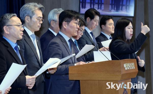¡ã ´õºÒ¾î¹ÎÁÖ´ç Ãʼ± ¸ðÀÓ ¡®´õ¹ÎÃÊ¡¯ ¼Ò¼Ó ÀÇ¿øµéÀÌ 16ÀÏ ¼­¿ï ¿©Àǵµ ±¹È¸ ¼ÒÅë°ü¿¡¼­ ±âÀÚȸ°ßÀ» ¿­°í ¡°¿ì¿ø½Ä ±¹È¸ÀÇÀåÀº Áö³­ 13ÀÏ ±¹Á¤°¨»ç ¹× Á¶»ç¿¡ °üÇÑ ¹ý·ü¿¡ ±Ù°ÅÇØ °¢ ±³¼·´Üü ´ëÇ¥ ÀÇ¿øµé¿¡°Ô ±¹Á¶Æ¯À§ ±¸¼º ÇùÀǸ¦ ¿äûÇß´Ù¡±¸ç ¡°±¹¹ÎÀÇÈûÀº À±¼®¿­ Á¤±Ç Á¤Ä¡°ËÂû Á¶ÀÛ ±â¼Ò ÀÇȤ Áø»ó±Ô¸íÀ» À§ÇÑ ±¹Á¤Á¶»ç¿¡ Àû±Ø ÇùÁ¶ÇÒ °ÍÀ» °­·ÂÈ÷ Ã˱¸ÇÑ´Ù¡±°í ¸»Çß´Ù. ¹Ú¹Ì³ª ±âÀÚ ¨Ï½ºÄ«À̵¥Àϸ®Á¶ÀÛ±â¼Ò Áø»ó±Ô¸íÀ» À§ÇÑ ±¹Á¤Á¶»ç ÃßÁø¡¯À» ÁÖÀåÇß´Ù.  ¹Ú¹Ì³ª ±âÀÚ ¨Ï½ºÄ«À̵¥Àϸ®