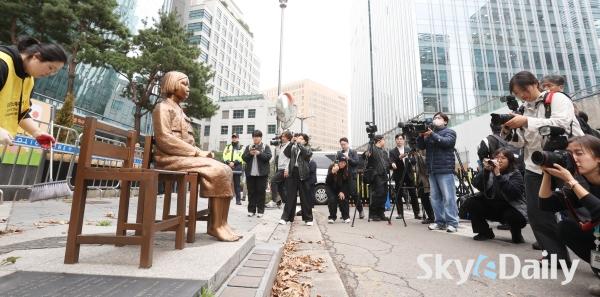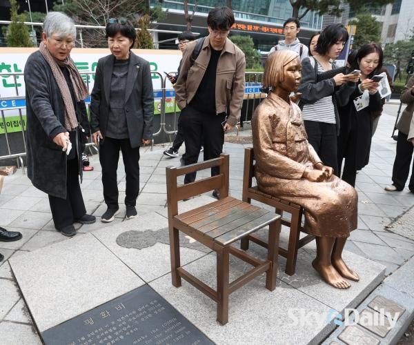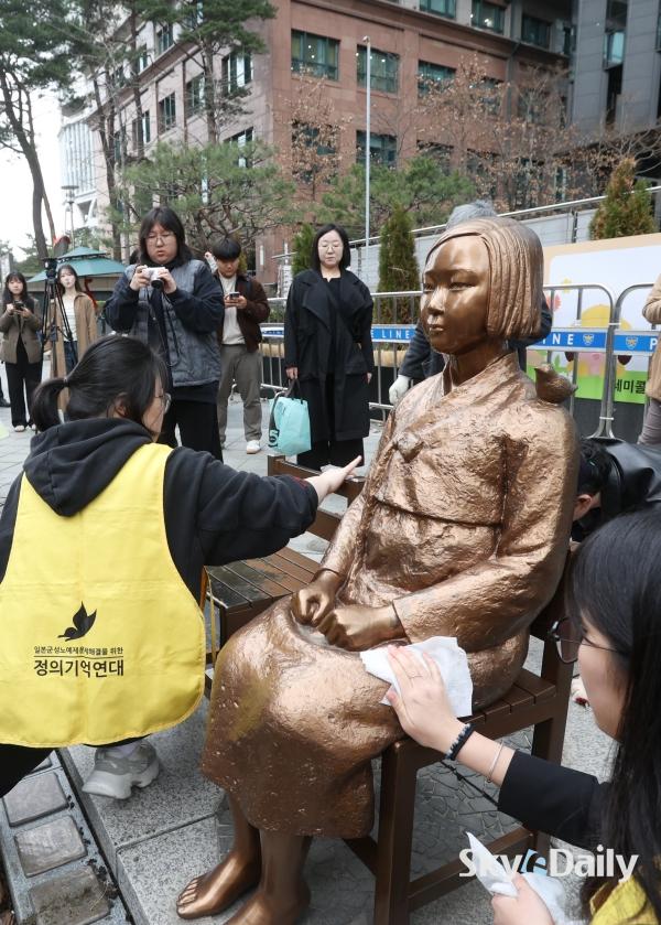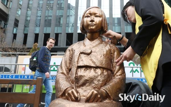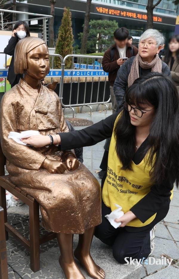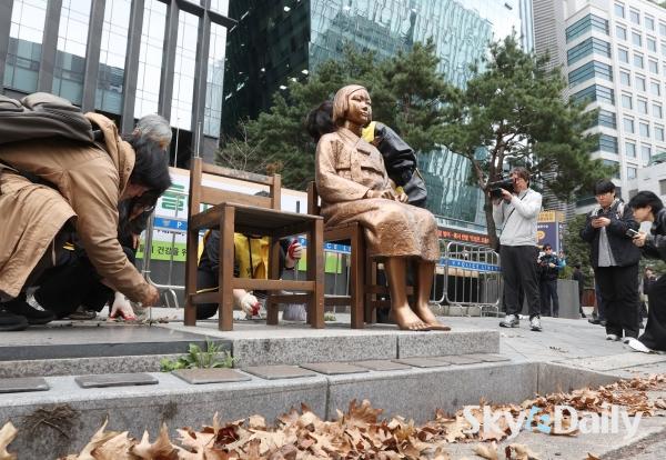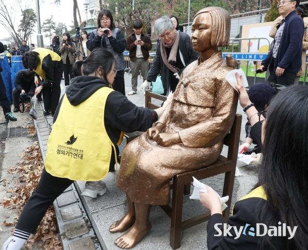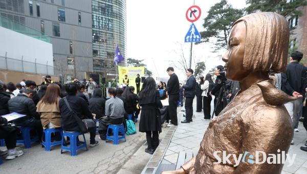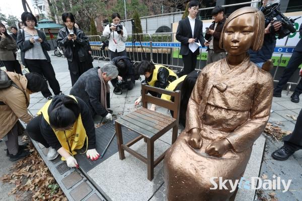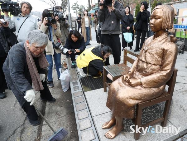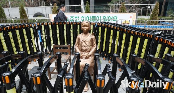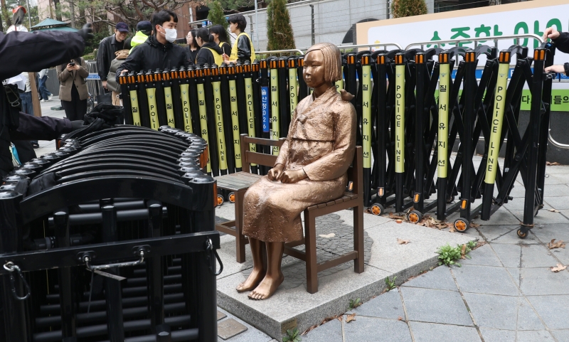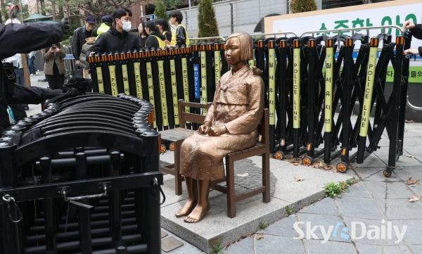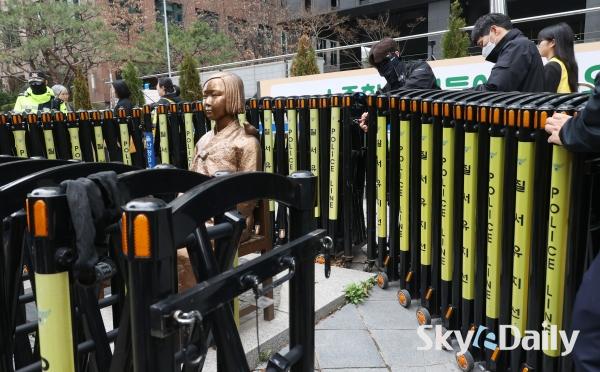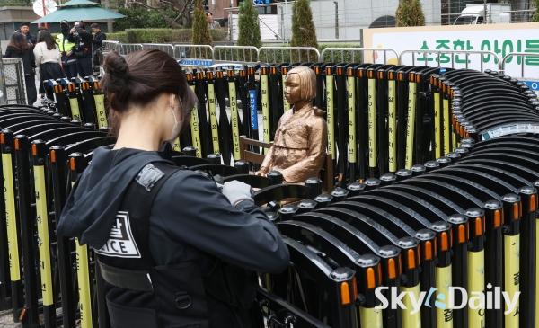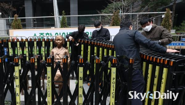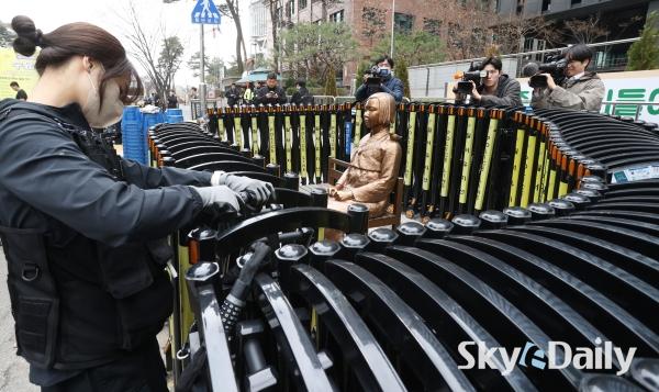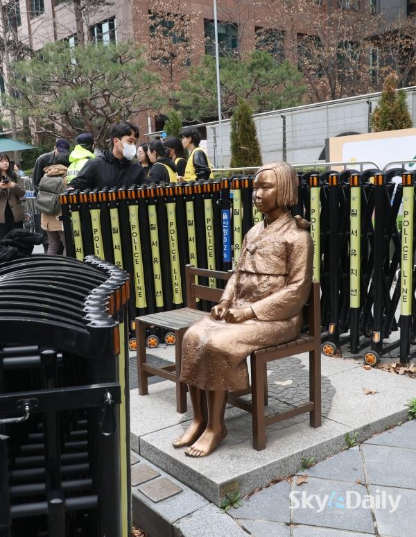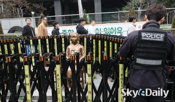 ¡ã 1ÀÏ ¼­¿ï Á¾·Î±¸ ¿¾ ÁÖÇÑ ÀϺ»´ë»ç°ü ¾Õ¿¡¼­ ¿­¸° Á¦1746Â÷ ÀϺ»±º ¼º³ë¿¹Á¦ ¹®Á¦ÇذáÀ» À§ÇÑ Á¤±â ¼ö¿ä½ÃÀ§¿¡ ¾Õ¼­ °æÂûÀÌ ÆòÈ­ÀÇ ¼Ò³à»óÀ» µÑ·¯½Ñ ¹Ù¸®ÄÉÀ̵带 ö°ÅÇϰí ÀÖ´Ù. Á¤ÀDZâ¾ï¿¬´ë(Á¤ÀÇ¿¬)¿¡ µû¸£¸é ¼­¿ï Á¾·Î°æÂû¼­ °æºñ°ú µîÀº ´çºÐ°£ ¼ö¿ä½ÃÀ§ ½Ã°£¿¡ ÇÑÇØ ¹Ù¸®ÄÉÀ̵带 °³¹æÇϱâ·Î Çß´Ù. °æÂûÀº ±¸¼ÓµÈ ±èº´Çå À§¾ÈºÎ¹ýÆóÁö±¹¹ÎÇൿ ´ëÇ¥ÀÇ º¸¼® °¡´É¼º µî ÀçÁýȸ¿¡ µû¸¥ ¾ÈÀü ¹®Á¦¸¦ °í·ÁÇØ Àü¸é ö°Å ´ë½Å Çѽà °³¹æ ¹æ½ÄÀ» ÅÃÇÑ °ÍÀ¸·Î ÀüÇØÁ³´Ù. ¹Ú¹Ì³ª ±âÀÚ ¨Ï½ºÄ«À̵¥Àϸ®