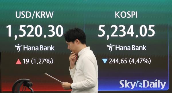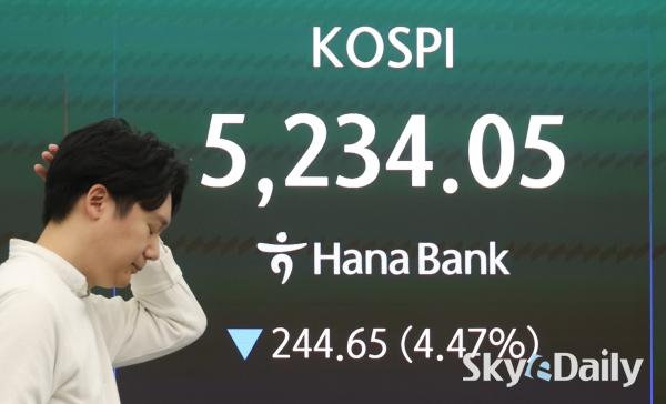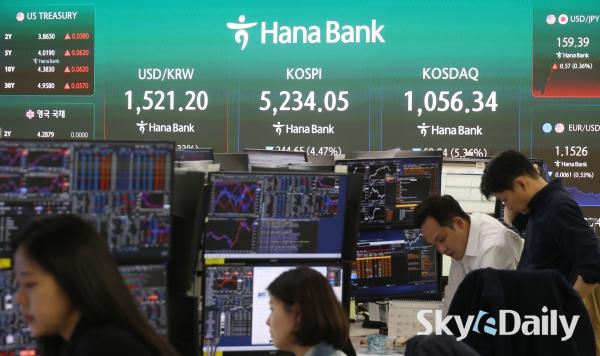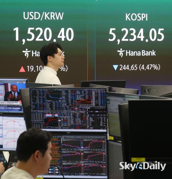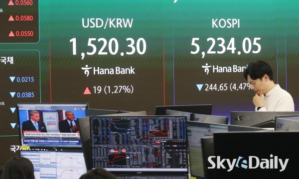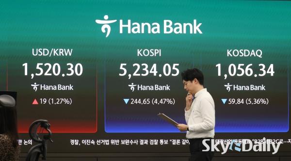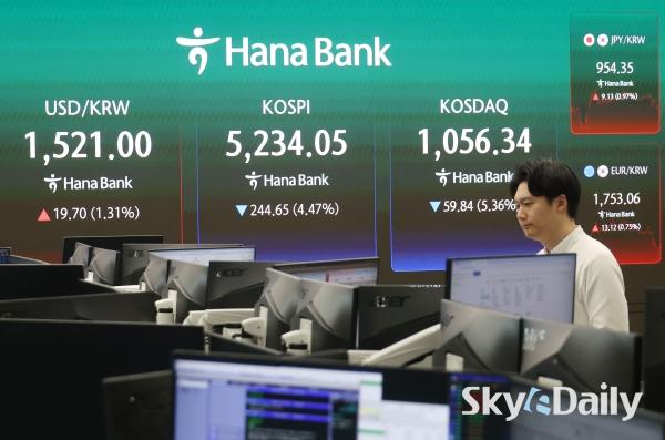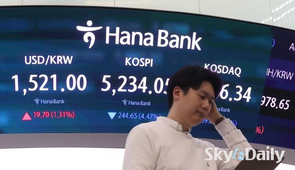 ¡ã ÄÚ½ºÇÇ¡¤ÄÚ½º´Ú Áö¼ö°¡ ±Þ¶ôÇϸ鼭 ¸Åµµ »çÀ̵åÄ«(ÇÁ·Î±×·¥ ¸ÅµµÈ£°¡ ÀϽà ȿ·Â Á¤Áö)°¡ ¹ßµ¿µÈ 2ÀÏ ¿ÀÈÄ ¼­¿ï Áß±¸ ÇϳªÀºÇà µô¸µ·ë¿¡ Á¾°¡°¡ ³ª¿À°í ÀÖ´Ù. À̳¯ ÄÚ½ºÇÇ´Â Àü °Å·¡ÀÏ5478.70º¸´Ù 244.65Æ÷ÀÎÆ®(4.47%) ³»¸° 5234.05, ÄÚ½º´Ú Áö¼ö´Â Àü °Å·¡ÀÏ1116.18º¸´Ù 59.84Æ÷ÀÎÆ®(5.36%) Ç϶ôÇÑ 1056.34¿¡ °Å·¡¸¦ ¸¶ÃÆ´Ù. ¿ø¡¤´Þ·¯ ȯÀ²Àº Àü °Å·¡ÀÏ 1501.3¿øº¸´Ù 18.4¿ø ¿À¸¥ 1519.7¿ø¿¡ ¸¶°¨Çß´Ù. ¹Ú¹Ì³ª ±âÀÚ ¨Ï½ºÄ«À̵¥Àϸ®