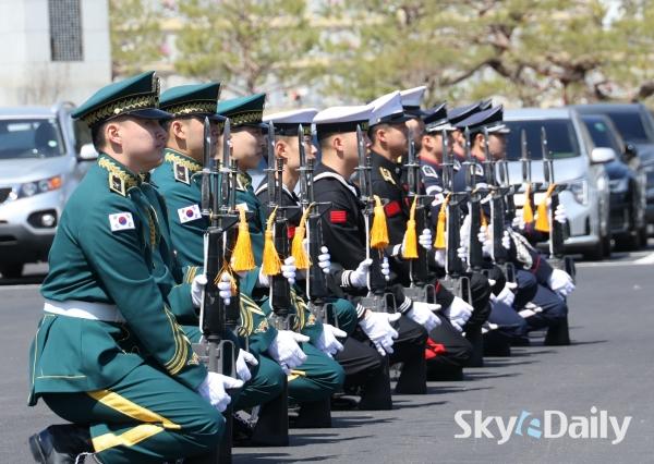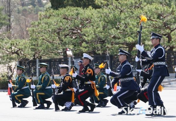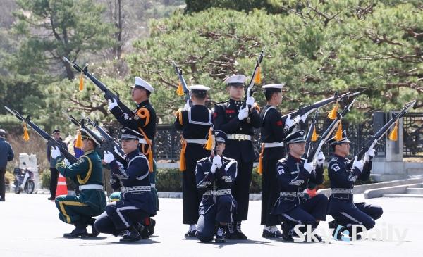 ¡ã 7ÀÏ ¼­¿ï µ¿ÀÛ±¸ ±¹¸³¼­¿ïÇöÃæ¿ø ÇöÃæ¹® ¾Õ¿¡¼­ ¿­¸° ¡®ÇöÃæ¹® Á¤·Ê ±º(ÏÚ) ÀÇÀåÇà»ç¡¯¿¡¼­ ±¹¹æºÎ ÀÇÀå´ë ¼Ò¼Ó ±ºÀ庴µéÀÌ µ¿À۽ùüÀ» ¼±º¸À̰í ÀÖ´Ù. ¹Ú¹Ì³ª ±âÀÚ ¨Ï½ºÄ«À̵¥Àϸ®
